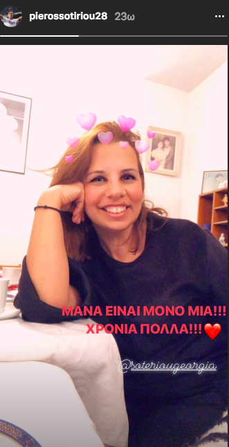 Ο διεθνής ποδοσφαιριστής Πιέρος Σωτηρίου μπορεί να βρίσκεται μακριά από την μαμά του λόγω επαγγελματικών υποχρεώσεων, ωστόσο δεν παρέλειψε να της κάνει αφιέρωση για την γιορτή της μητέρας. Αναρτώντας μια φωτογραφία της μητέρας του γεμάτη καρδούλες έγραψε "Μάνα είναι μόνο μία. Χρόνια Πολλά" και έτσι ευχήθηκε με τον δικό του τρόπο στην μαμά του.