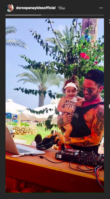 Η μικρή Αριάνα, η κόρη του Δώρου Παναγίδη και της Νάταλη Κάτερ, στην αγκαλιά του μπαμπά της εν ώρα εργασίας!