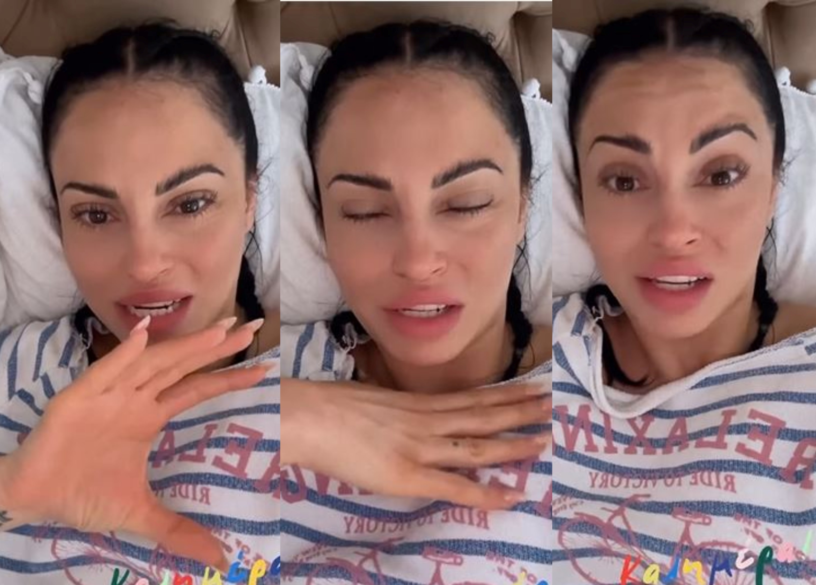 Μεταξύ άλλων αναφέρει: «Παιδιά, τελικά έφαγα πολύ σοβαρό τράνταγμα, έτσι; Εχθές ζορίστηκα τόσο πολύ, δεν ξέρω πως έβγαλα τη μέρα, αισθανόμουν έτσι το κεφάλι μέσα να κουνιέται, δεν μπορώ να το εξηγήσω. Ήταν μια τρομερή δυσφορία. Πόνος στον αυχένα και ξεκίνησε και πόνος στην πλάτη, δεν ξέρω πώς έβγαλα όλη την μέρα. Τώρα νιώθω λίγο τον αυχένα μου, το κεφάλι μου το νιώθω καλά».