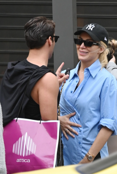 Στις φωτογραφίες, η Κατερίνα Καινούργιου εμφανίζεται με μαύρο κολάν, γαλάζιο πουκάμισο, καπέλο και γυαλιά ηλίου, ενώ συνοδευόταν από τον φίλο της, Ανέστη Ευαγγελόπουλο. Κατά τη διάρκεια της συνομιλίας τους, η παρουσιάστρια κρατούσε την περιοχή της κοιλιάς της.
