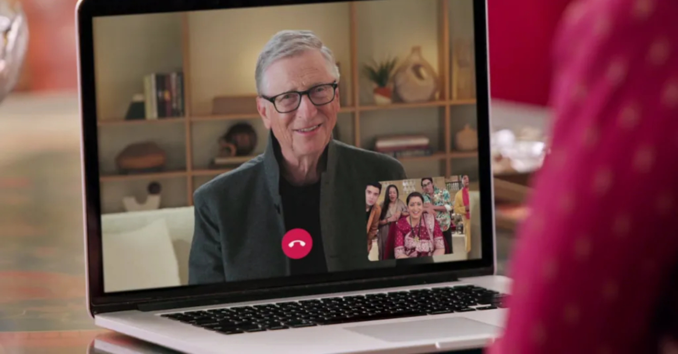 Στο τετράλεπτο segment, ο Γκέιτς καλεί τη «Τούλσι» της Σμίτι Ιράνι σε βιντεοκλήση, χαιρετώντας την στα χίντι: «Namaste, Tulsi-ji» και ρωτώντας αν το είπε σωστά. «Ναι, απολύτως τέλειο», απαντά εκείνη χαμογελώντας.