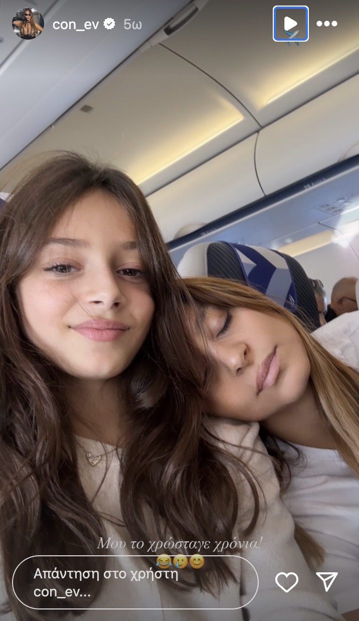 Στην Αθήνα πέρασε άλλο ένα τριήμερο η Κωνσταντίνα Ευριπίδου και αυτή τη φορά είχε μαζί και τα παιδιά της Αριάδνη και Νικόλα. Επιστρέφοντας το πρωί της Τετάρτης 29 Οκτωβρίου η παρουσιάστρια θέλησε να ξεκουραστεί στο αεροπλάνο και αποκοινήθηκε στον ώμο της κόρη της της.