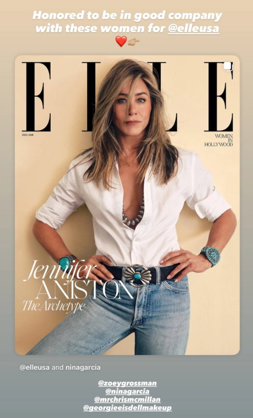«Είναι κάτι όμορφο να αφιερώσεις τη ζωή σου σε αυτό» είπε για τον σύντροφό της η Άνιστον δημοσιεύοντας στα stories της το εξώφυλλο του περιοδικού αλλά μια από τις σέξι φωτογραφίες της.
