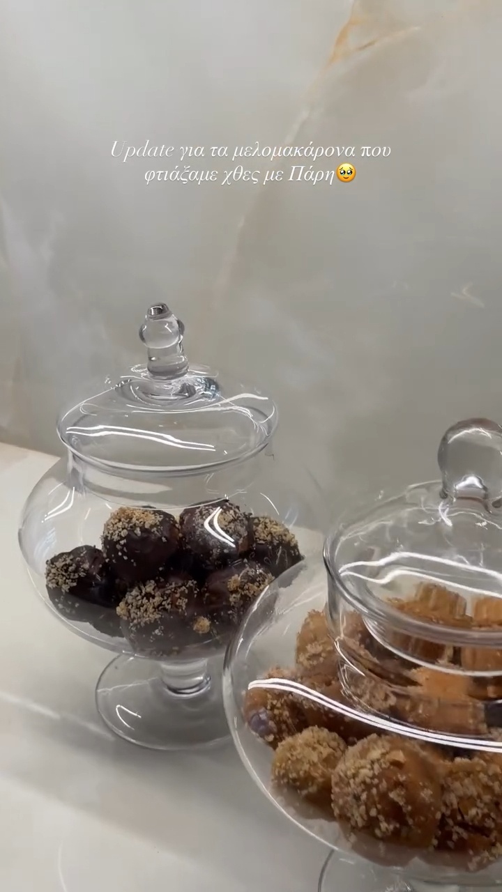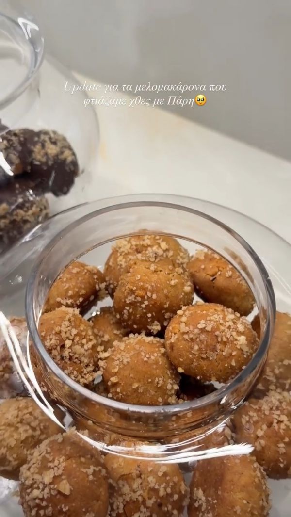 Η γνωστή influencer μοιράστηκε στα Instagram stories της βίντεο από τη διαδικασία, δείχνοντας βήμα–βήμα πώς ετοίμασε τα σπιτικά της μελομακάρονα. Όπως αποκάλυψε, η συνταγή «πέτυχε» και μάλιστα έφτιαξε δύο εκδοχές, την κλασική, με καρύδι και άφθονο μέλι, αλλά και μια πιο σύγχρονη, βουτηγμένη σε μαύρη σοκολάτα.