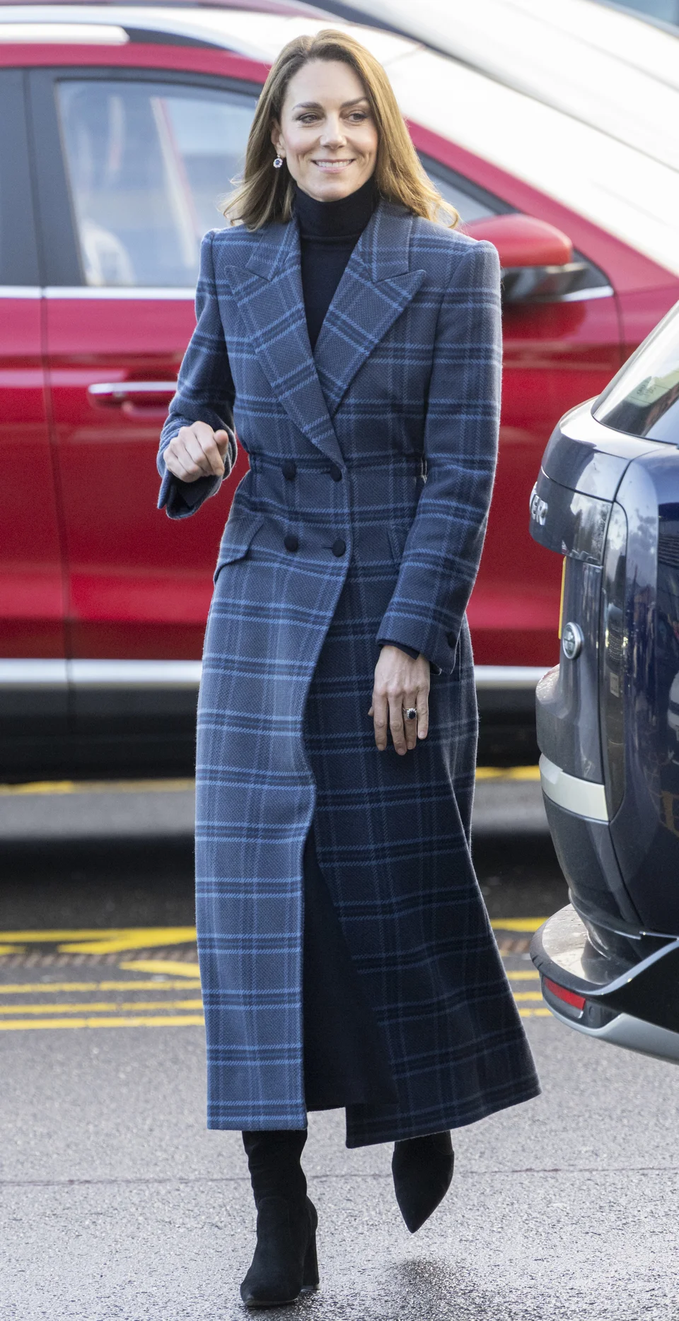 Σύμφωνα με δημοσίευμα της Telegraph (μέσω της ιστοσελίδας «The Looker»), η Κέιτ Μίντλετον συνεργάστηκε με τον κορυφαίο ράφτη Κρις Κερ και το σκωτσέζικο μπραντ Johnstons of Elgin, για τον σχεδιασμό ενός επιβλητικού μπλε καρό παλτό.