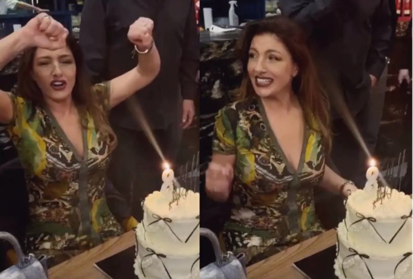 Η Έλενα Παπαρίζου γιόρτασε τα γενέθλιά της σβήνοντας την τούρτα που επέλεξαν οι συνεργάτες της με τον αριθμό 8.