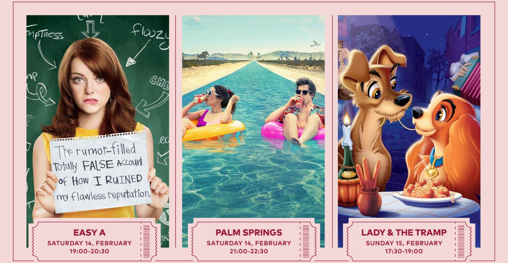 Η αρχή γίνεται το Σάββατο 14 Φεβρουαρίου με μια διπλή προβολή που δίνει επιλογές για κάθε διάθεση. Στις 19:00, η οθόνη ανήκει στο Galentine’s πνεύμα, προσφέροντας την ιδανική ευκαιρία σε φίλες, φίλους και singles να απολαύσουν την ταινία Easy A, σε ένα άκρως feel-good περιβάλλον. Αργότερα το ίδιο βράδυ, στις 21:00, η σκυτάλη περνά στα ζευγάρια για μια κλασική ρομαντική προβολή της ταινίας Palm Springs, δημιουργώντας το ιδανικό σκηνικό για ένα αξέχαστο ραντεβού. Η γιορτή συνεχίζεται την Κυριακή 15 Φεβρουαρίου στις 17:00 με μια οικογενειακή προβολή, όπου μικροί και μεγάλοι θα έχουν την ευκαιρία να παρακολουθήσουν την ταινία κινουμένων σχεδίων Lady and the Tramp, η οποία πραγματεύεται τη δύναμη της αγάπης με τον πιο τρυφερό τρόπο.