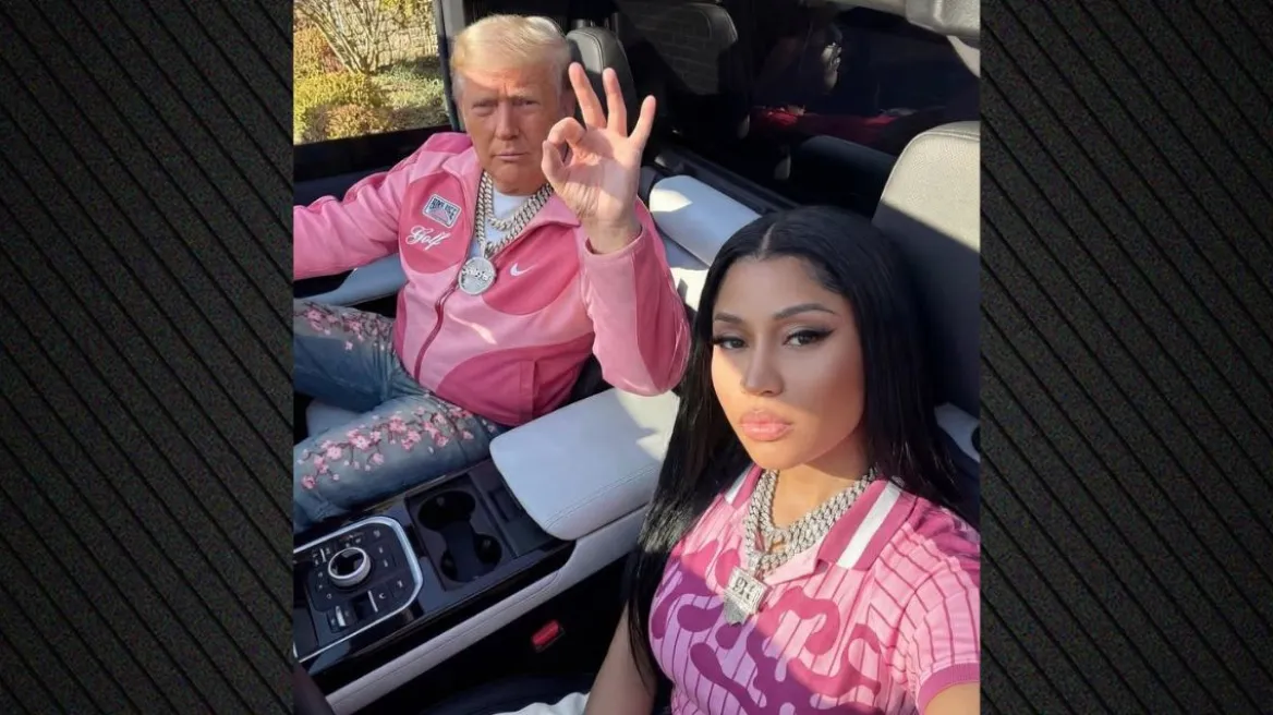 Η Νίκι Μινάζ ανέβασε φωτογραφίες AI με τον Ντόναλντ Τραμπ φορώντας ασορτί ροζ ρούχα και προκάλεσε αντιδράσεις