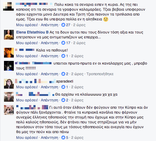 Όπως ήταν αναμενόμενο λοιπόν κατάφερε με τα όσα δήλωσε η Ελληνίδα ηθοποιός να ξεσηκώσει την αντίδραση συναδέλφων της από την Κύπρο.