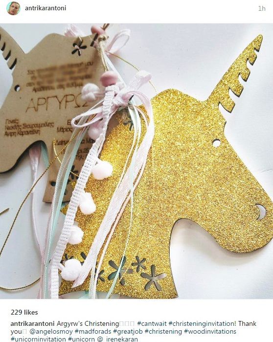 αναρτώντας μια φωτογραφία του προσκλητηρίου της βάφτισης συνοδεύοντας την με τα πιο κάτω λόγια: