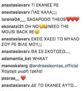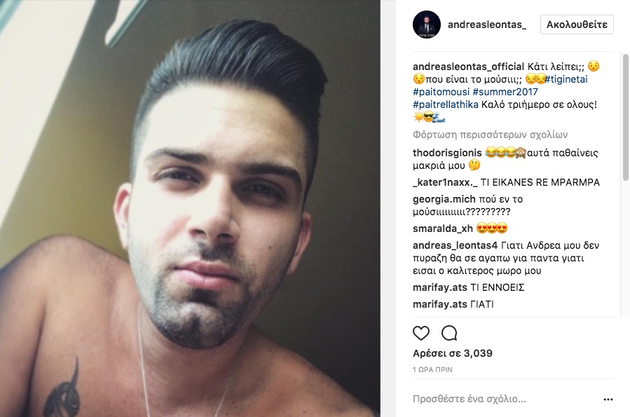«Κάτι λείπει;; που είναι το μούσιιι;; Καλό τριήμερο σε ολους» μας έγραψε ο Ανδρέας Λέοντας στα social media του και αυτά πήραν φωτιά. «Παέι τρελάθηκα» πρόσθεσε ο ταλαντούχος Κύπριος τραγουδιστής αλλά η στυλιστική αλλαγή του δεν άρεσε καθόλου στις θαυμάστριες του. Εκείνες του επιτέθηκαν στα social media λέγοντας του να φέρει πίσω το μούσι του. Εκείνος προς το παρών δεν αντέδρασε αλλά σίγουρα με τόσες αντιδράσεις που καλύπτουν σχεδόν όλες τις θαυμάστριες του σίγουρα θα σκεφτεί τριπλά και τετραπλά να πάρει ξανά μια τετοια απόφαση.