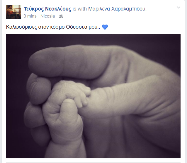 O γνωστός τραγουδιστής δημοσίευσε μια φωτογραφία στην οποία απεικονίζεται να κρατάει για πρώτη φορά το γιο του Οδυσσέα και έγραψε στη λεζάντα: «Καλωσόρισες στον κόσμο Οδυσσέα μου..»!
