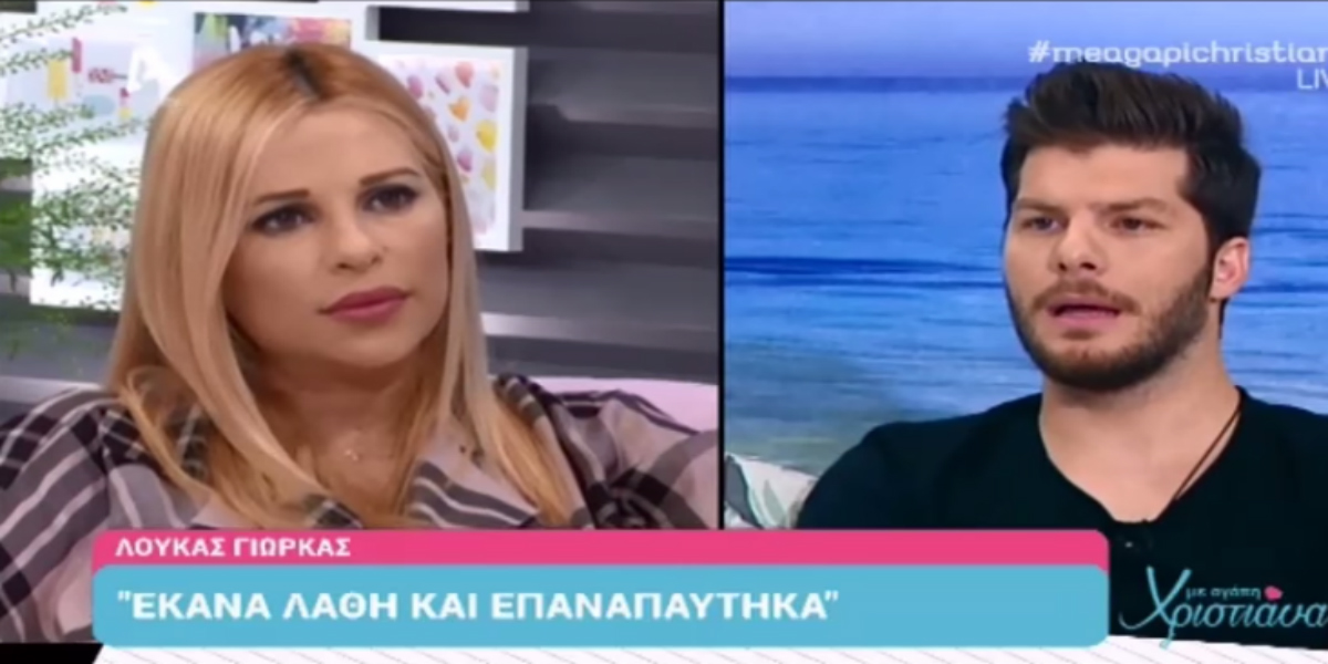 Ο Λούκας Γιώρκας, ο οποίος εδώ και αρκετούς μήνες δεν είναι πλέον μαζί με την Έλενα Ράπτη, μετά από τρία χρόνια σχέσης, βρέθηκε το απόγευμα της Δευτέρας, 18 Σεπτεμβρίου, καλεσμένος στην εκπομπή της Χριστιάνας Αριστοτέλους.