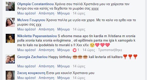Ας δούμε μερικές «γλυκές» ευχές στην Χριστιάνα Αριστοτέλους: