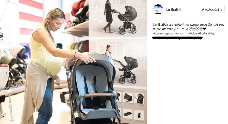 Σε λίγο καιρό θα κρατά στην αγκαλιά της τον καρπό του έρωτά της με τον σύντροφό της, Λούη Καραμάνο. Στον προσωπικό της λογαριασμό στο Instagram, λοιπόν, η πρώην αθλήτρια δημοσίευσε ένα στιγμιότυπο από τις τελευταίες προετοιμασίες πριν τον ερχομό του μπέμπη της. Στην εικόνα, λοιπόν, απεικονίζεται σε κατάστημα βρεφικών ειδών να κρατάει ένα καρότσι. Στη λεζάντα έγραψε χαρακτηριστικά: «Σε πολύ λίγο καιρό πάλι θα τρέχω.. πίσω απ'τον γιο μου..!».