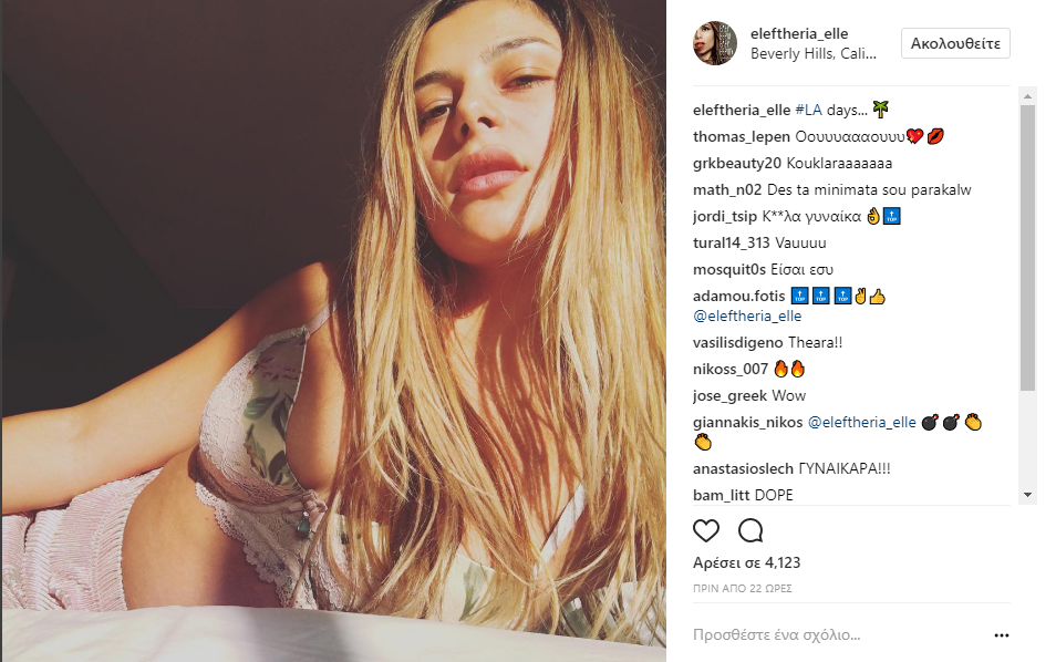 Η Ελευθερία Ελευθερίου ανεβάζει συχνά σέξι φωτογραφίες της.