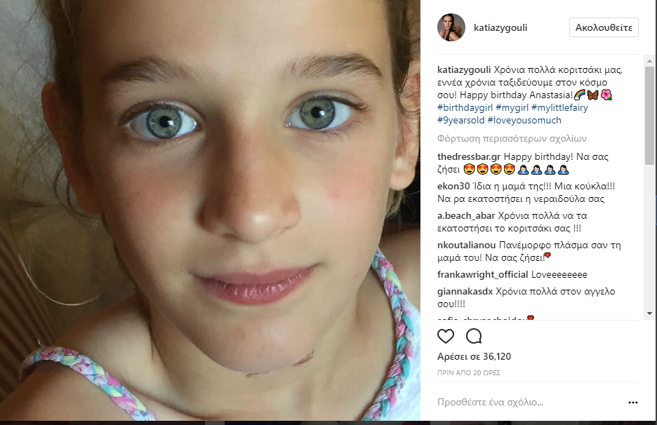 Η Κάτια ανέβασε μια φωτογραφία της 9χρονης Αναστασίας και τα likes και τα σχόλια έπεσαν βροχή. «Χρόνια πολλά κοριτσάκι μας, εννέα χρόνια ταξιδεύουμε στον κόσμο σου! Happy birthday Anastasia», έγραψε για λεζάντα η Κάτια Ζυγούλη, κάτω από τη φωτογραφία που ανήρτησε με την κούκλα Αναστασία της. Όλοι εύχονται στην γλυκιά μαμά να της ζήσει το αγγελούδι της. Η κόρη του κορυφαίου Έλληνα σταρ γίνεται εννέα ετών, με τους γονείς της να την καμαρώνουν καθημερινά εντός, αλλά και εκτός σπιτιού, σε ότι έχει να κάνει με τις σχολικές της δραστηριότητες. Η Κάτια Ζυγούλη θέλοντας να εκφράσει για άλλη μια φορά την αγάπη της προς την κόρη της, Αναστασία, της ευχήθηκε με τον πιο γλυκό τρόπο μέσω του προσωπικού της λογαριασμού στο Instagram.