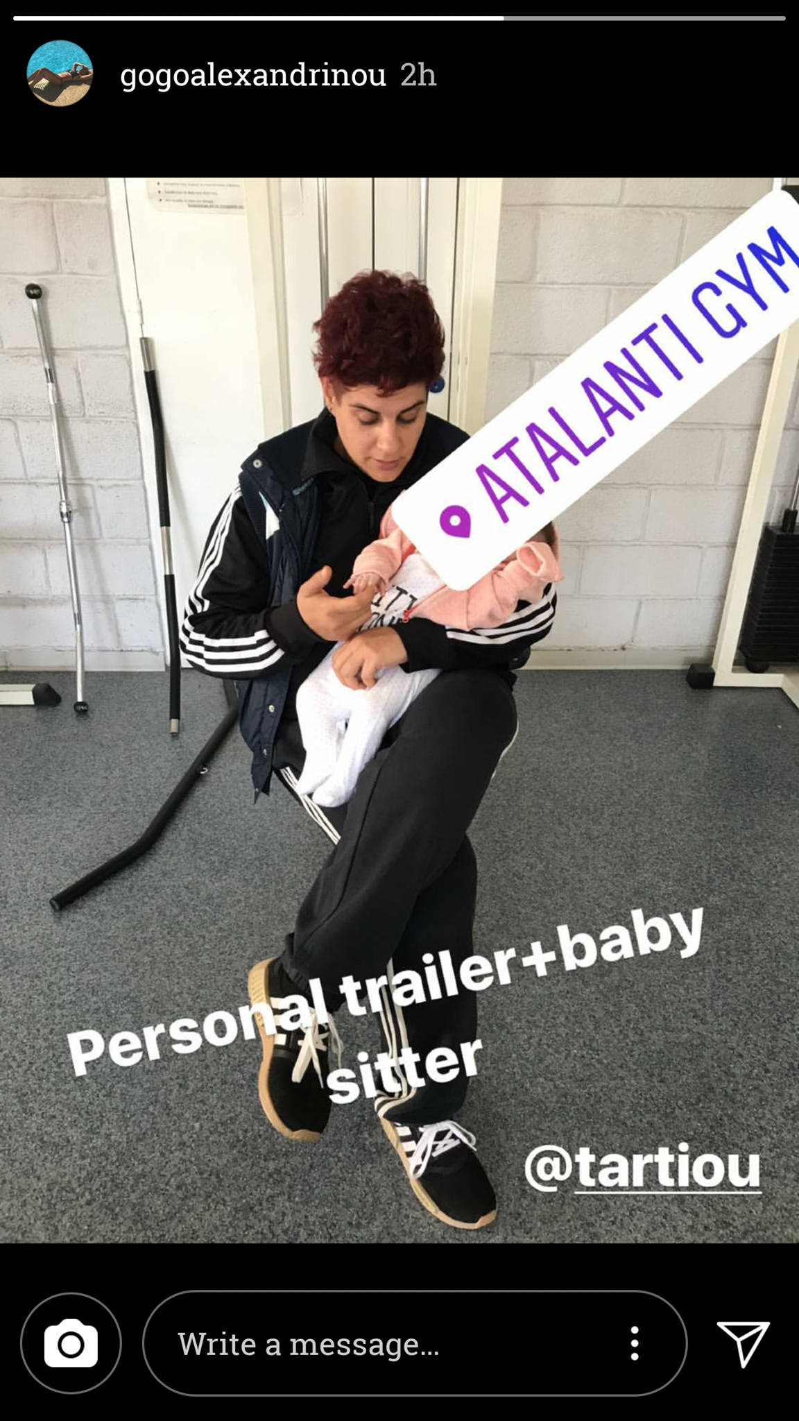 Ήρθε, όμως η ώρα για να επιστρέψει στο καθημερινό της πρόγραμμα. Μπορεί να μην έχει επιστρέψει στις επαγγελματικές της υποχρεώσεις, αλλά ξεκίνησε γυμναστική για να χάσει τα περιττά κιλά μετά τη γέννα, και να επαναφέρει το σώμα της σε καλή φυσική κατάσταση. Η γνωστή δημοσιογράφος έχει ξεκινήσει ισορροπημένο πρόγραμμα διατροφής, αλλά ξέρει πως χωρίς προπόνηση δεν γίνεται δουλίτσα. Γι' αυτό και φόρεσε τις φόρμες της και... “έλιωσε” στο γυμναστήριο, με την γυμνάστριά της να της κάνει προπόνηση αλλά και την baby sitter. Δείτε το όμορφο στιγμιότυπο που ανέβασε η αγαπημένη δημοσιογράφος στο InstaStory της.