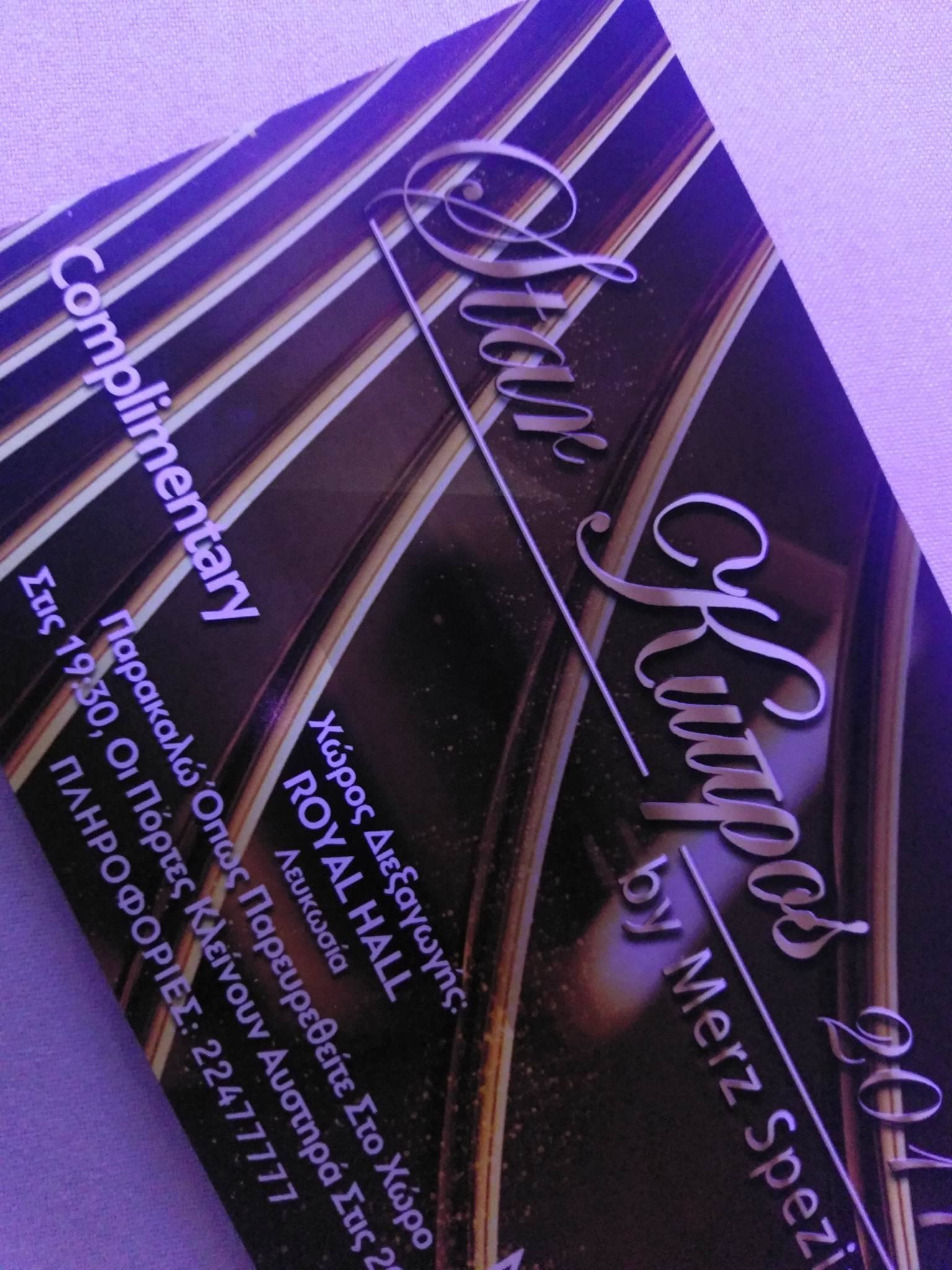 Κατά την άφιξή τους στο Pavillion Hall στη Λευκωσία, όπου πραγματοποιείται απόψε (26/11) ο τελικός του επίσημου Παγκύπριου Διαγωνισμού Ομορφιάς, οι προσκεκλημένοι έλαβαν από τους οικοδεσπότες εισιτήριο εισόδου.