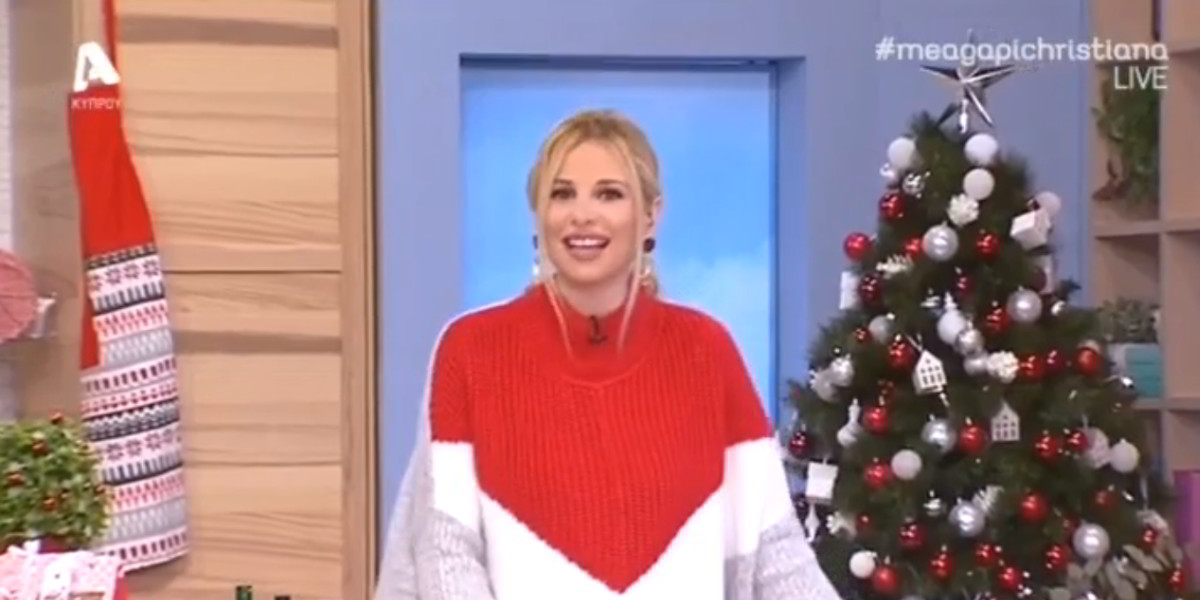 Η Χριστιάνα Αριστοτέλους εμφανίστηκε στην εκπομπή «Με Αγάπη Χριστιάνα» φορώντας ένα υπέροχο πλεκτό μπλουζάκι σε κόκκινο και άσπρο χρώμα, ενώ τα παπούτσια της είναι άκρως εντυπωσιακά, και αυτά στο κόκκινο.