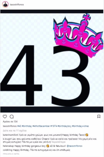 Ο Τάσος Τρύφωνος έχει σήμερα τα γενέθλιά του και οι σελίδες του στα μέσα κοινωνικής δικτύωσης γέμισαν μπαλόνια, ευχές, χαμόγελα και αγάπη από γνωστούς και φίλους που ξεκίνησαν από νωρίς να του στέλνουν μηνύματα.