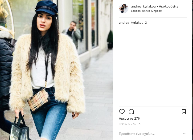 Ο λόγος για την Άντρεα Κυριάκου η οποία βρίσκεται στο Λονδίνο, στο πλευρό του Γιώργου Μερκή, ο οποίος έχει αγώνα στις 06 Δεκεμβρίου με τον ΑΠΟΕΛ εναντίον της Tottenham. Δείτε την εμφάνιση της στη φωτογραφία που ακολουθεί: